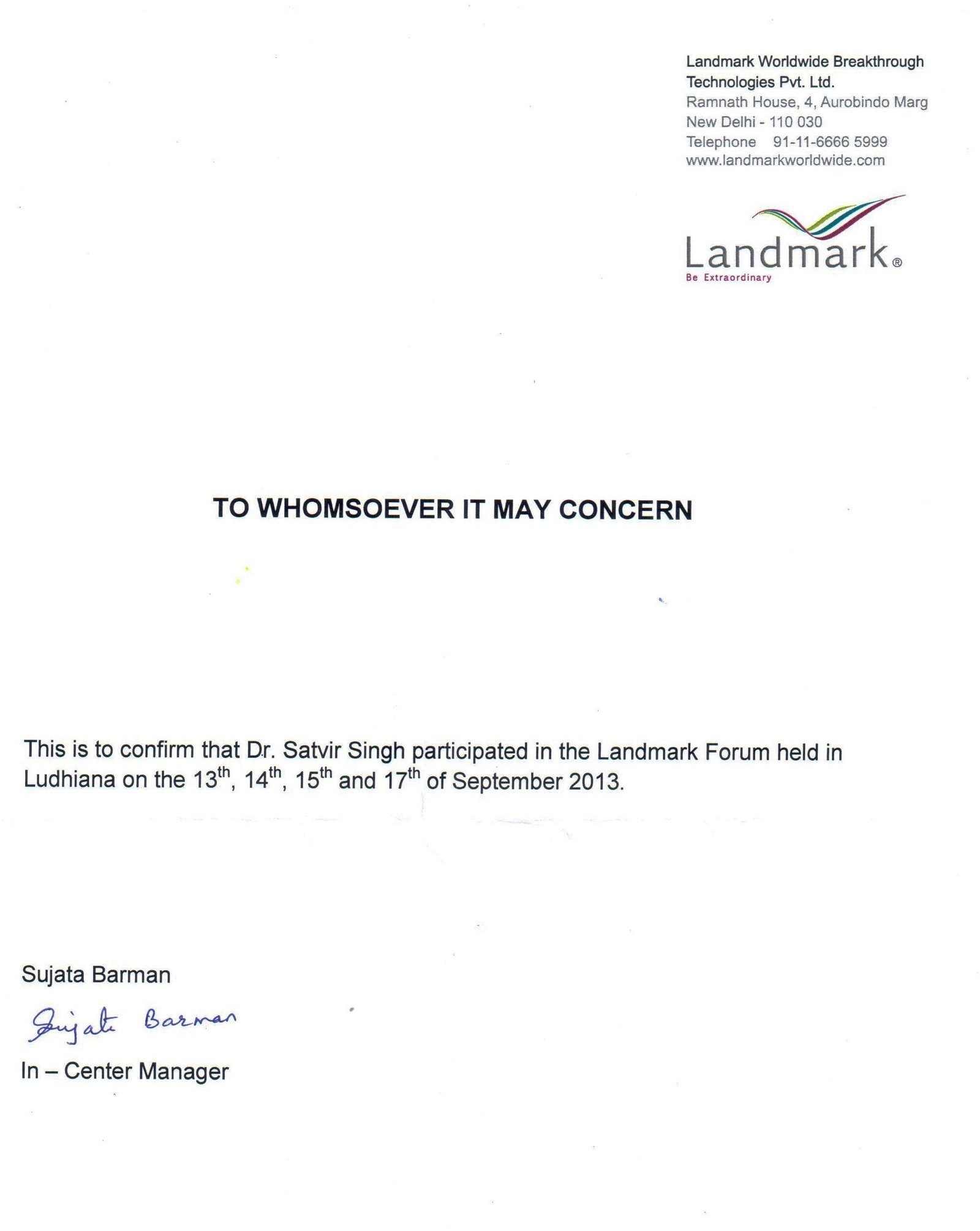 | 3. | Life Skills | 4-Day Landmark Forum | Ludhiana, PB | Sep, 13-17 2013 |  |
