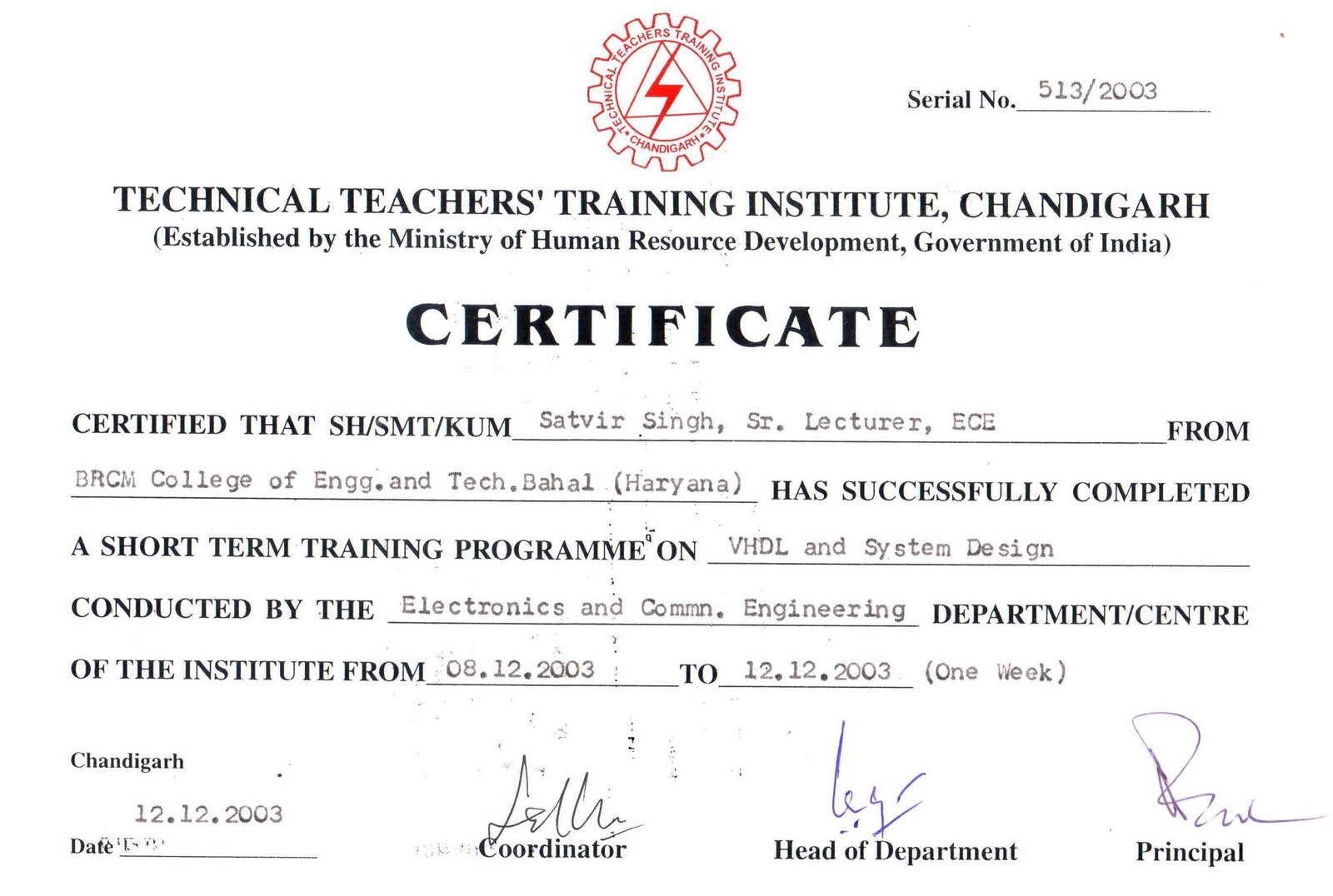 | 16. | VHDL and System Design | Short Term Course | TTTI, Chandigarh | Dec, 08-12 2003 |  |