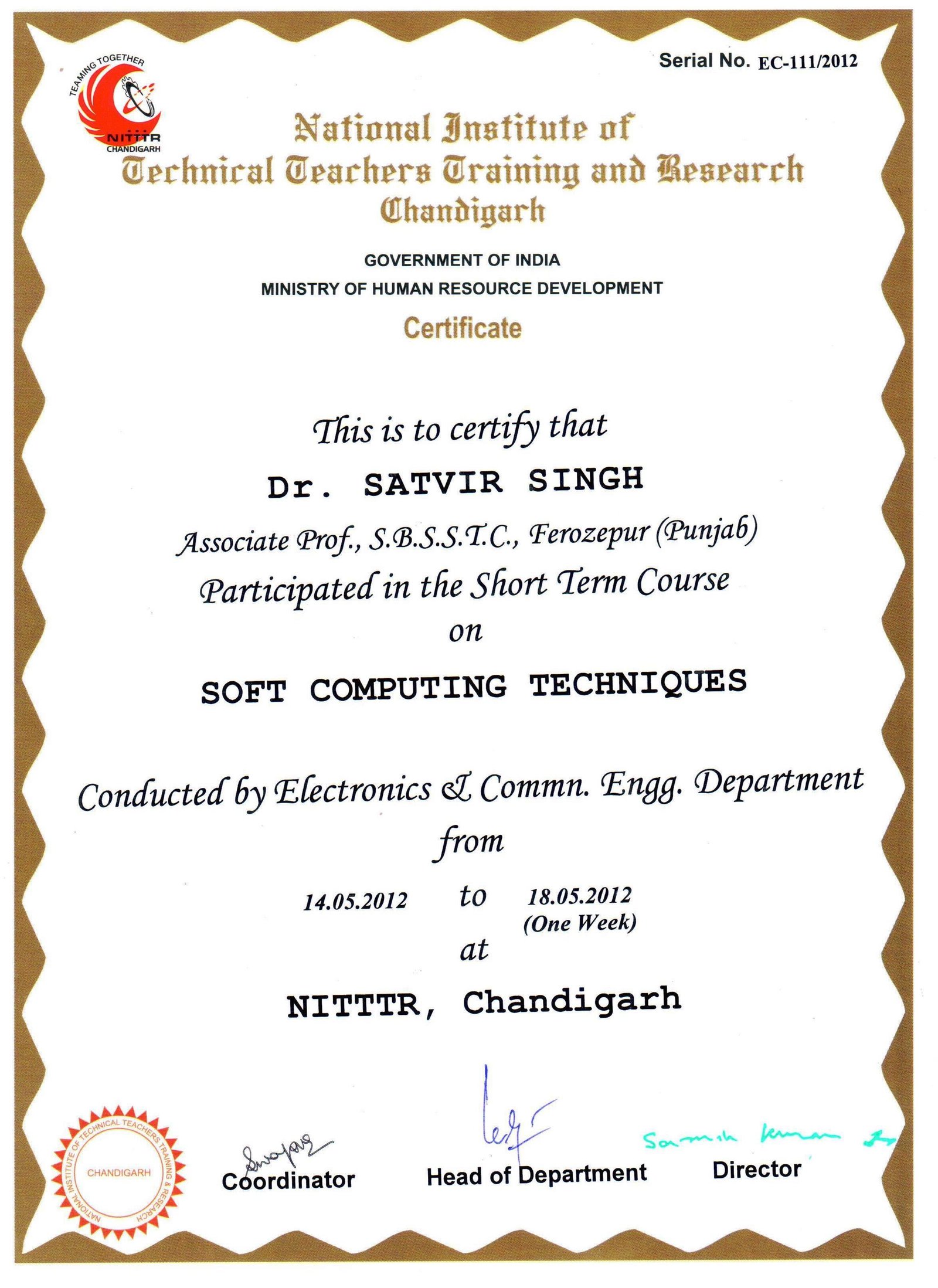 | 12. | Soft Computing Techniques | Short Term Course | NITTTR, Chandigarh | May, 14-18 2012 |  |