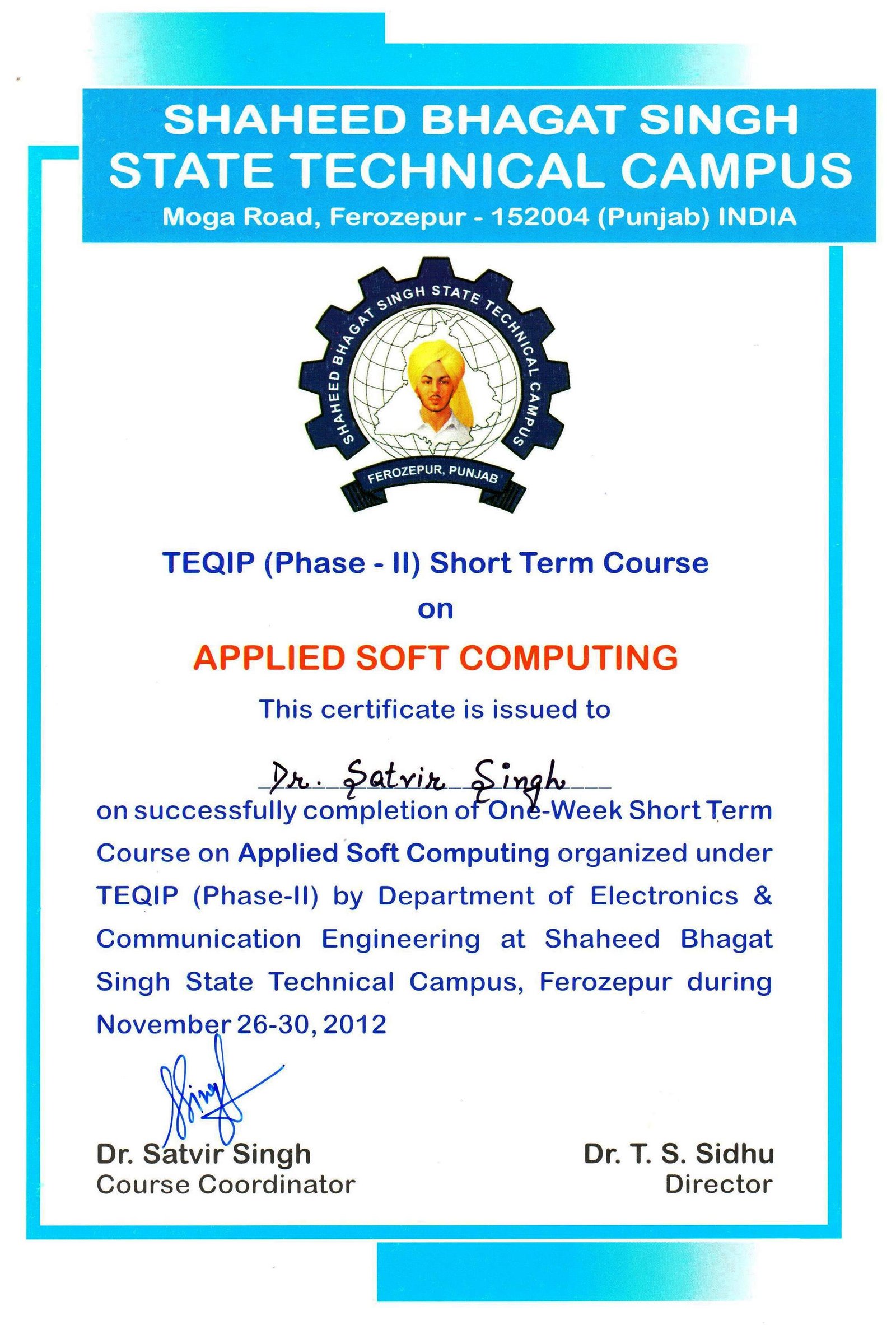 | 10. | Applied Soft Computing | TEQIP Sponsored STC | SBS College of Engg. & Tech., Ferozepur, PB | Nov, 26-30 2012 |  |