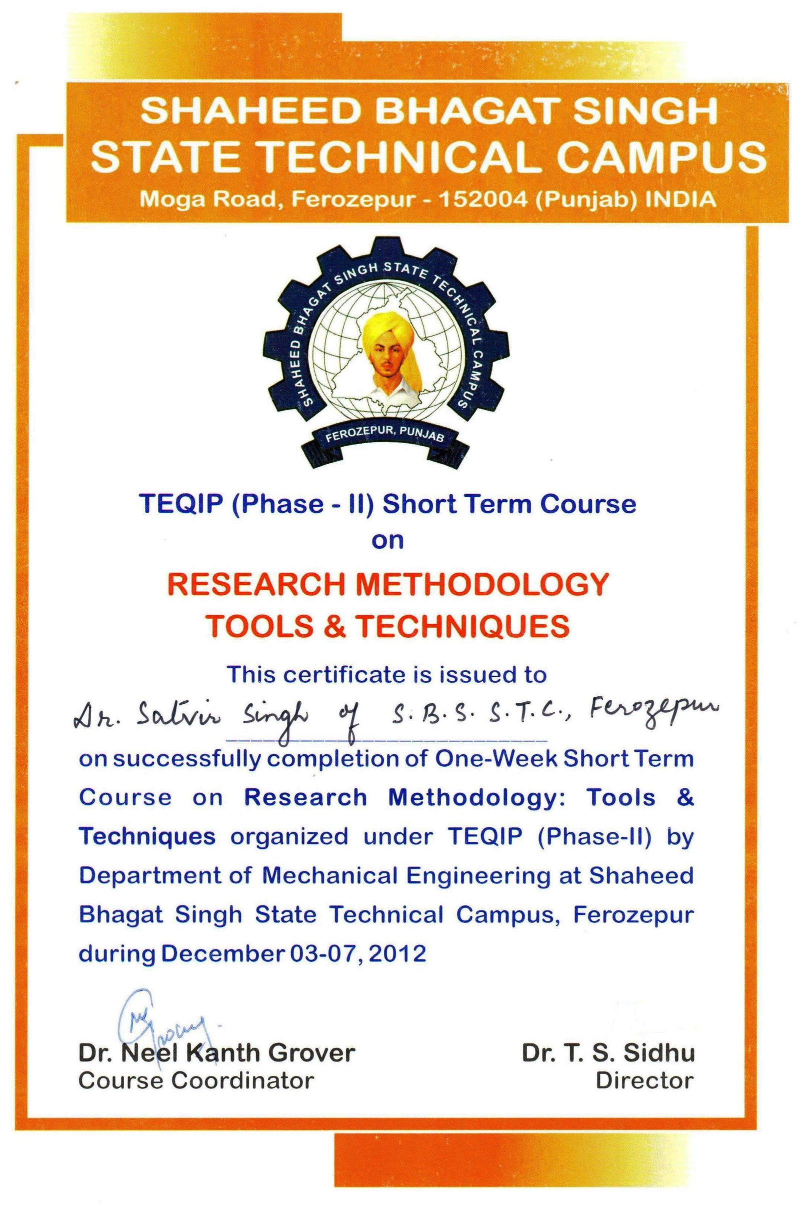 | 9. | Research Methodology, Tools and Techniques | TEQIP Sponsored STC | SBS College of Engg. & Tech., Ferozepur, PB | Dec, 03-07 2012 |  |