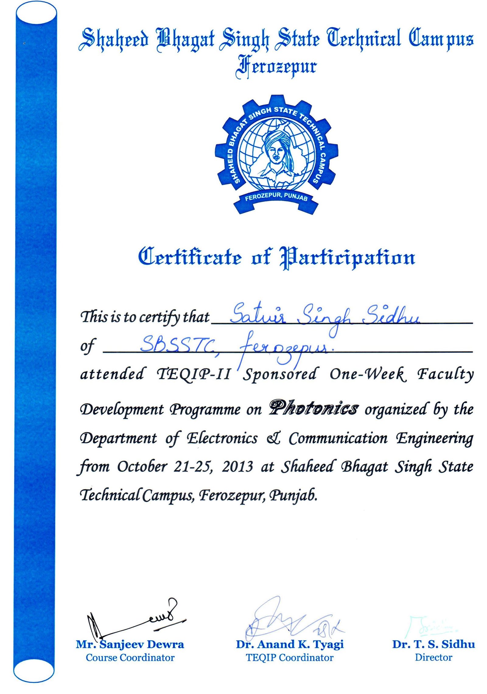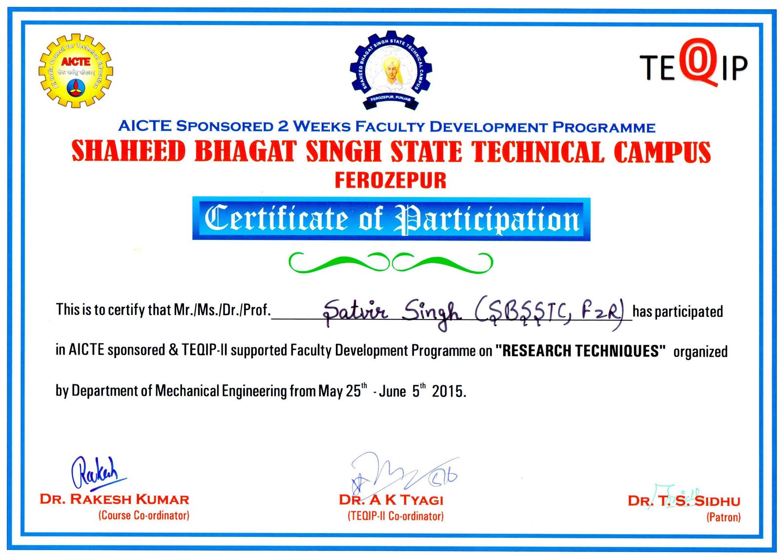 | 1 | Research Techniques | AICTE-TEQIP Sponsored FDP | SBS State Technical Campus, Ferozepur, PB | May, 25-05 2015 |  |