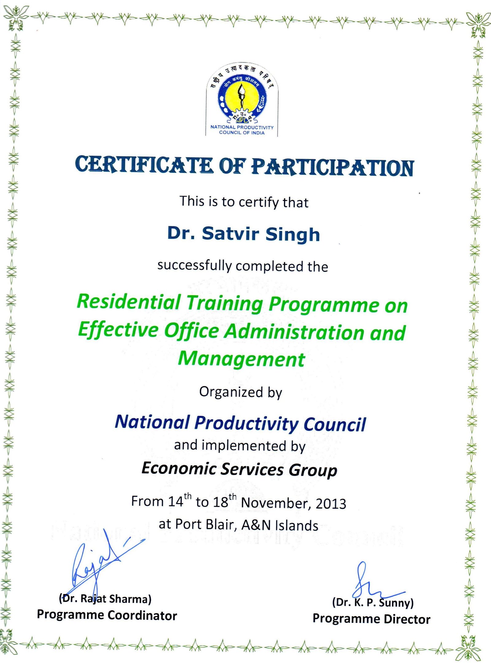 | 4. | Effective Office Administration & Management | Residential Training Programme | Port Blair, Andaman and Nicobar Islands | Nov, 14-18 2013 |  |