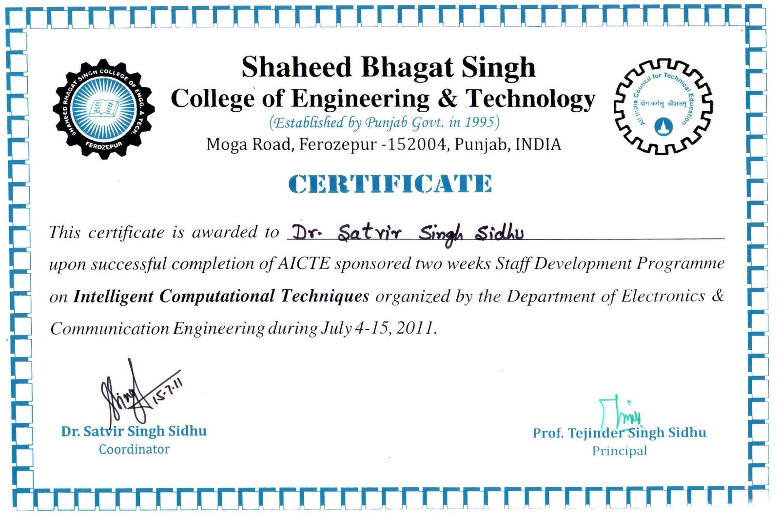 | 4 | Intelligent Computational Techniques | AICTE Sponsored SDP | SBS College Engg. & Tech., Ferozepur, PB | Jul, 04-15 2011 |  |
